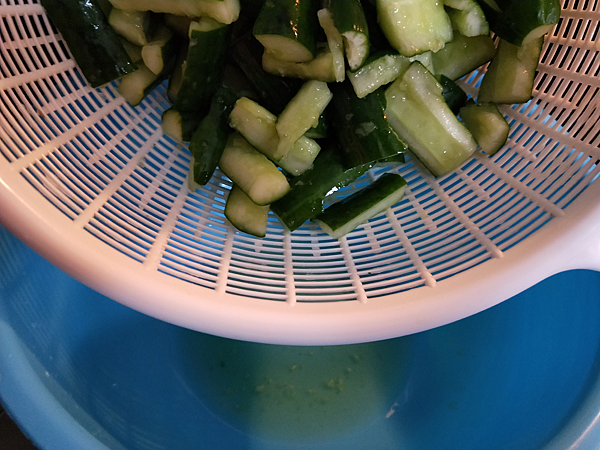 5. 目地是為了讓小黃瓜出水,如此,出水後的小黃瓜會變的更青脆,生菜味也會減少,這時的小黃瓜也會吸附鹹味